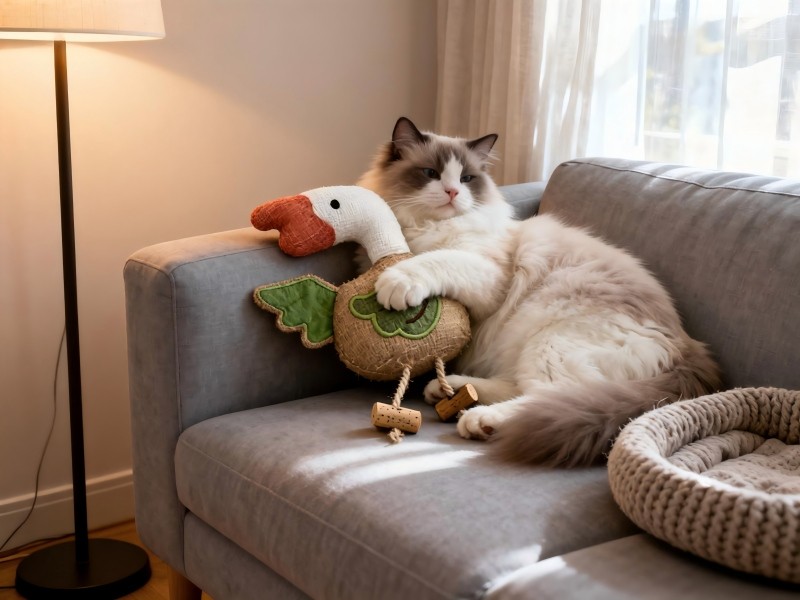 Is your indoor cat bored with their old toys? Meet the Burlap Goose Cat Toy – the ultimate interactive chew & bat toy designed to satisfy your cat's natural hunting instincts. Crafted from natural, textured burlap, this durable goose-shaped toy is perfect for chewing, batting, and pouncing. It helps promote dental health by cleaning teeth through chewing and provides essential mental & physical en