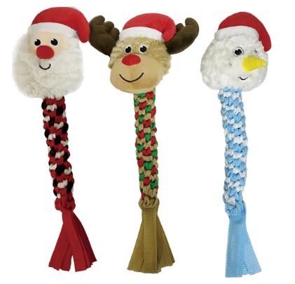 Christmas Themed Plush & Braided Rope Pet Toys Set - Santa, Reindeer, Snowman