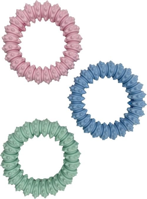 Elevate your dog’s playtime with our 3 - Pack Colorful Spiked Ring Dog Chew Toys! This vibrant set includes three rings in pink, blue, and mint green—each featuring textured spikes that serve dual purposes: satisfying your pup’s natural chewing instincts while gently cleaning teeth and massaging gums for improved dental health. Crafted from ultra - durable, pet - safe material, these rings withsta