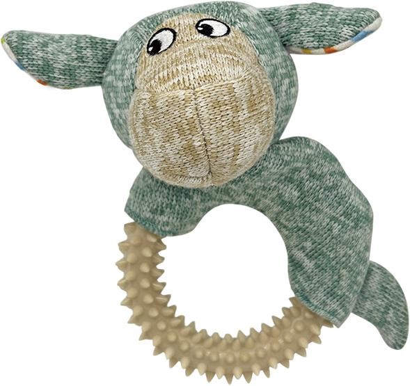 Green Knit Donkey Dog Toy with Spiky Chew Ring - Interactive Teething Pet Toy