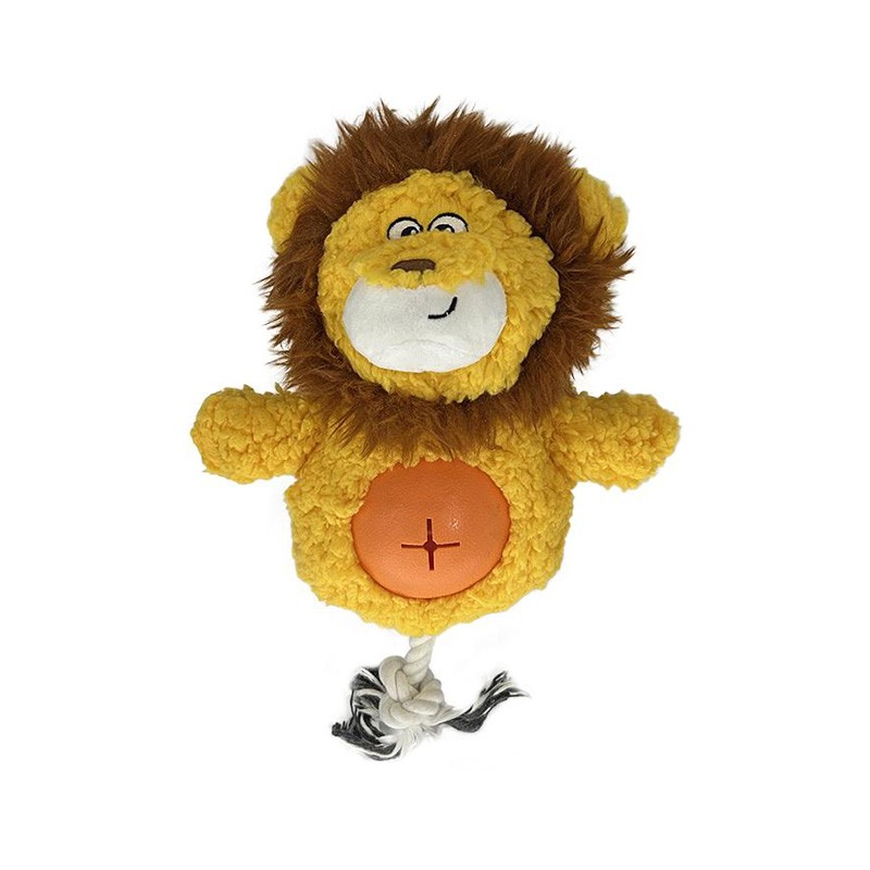 Lion Plush Squeaky Dog Toy with TPR Treat Dispenser & Rope
